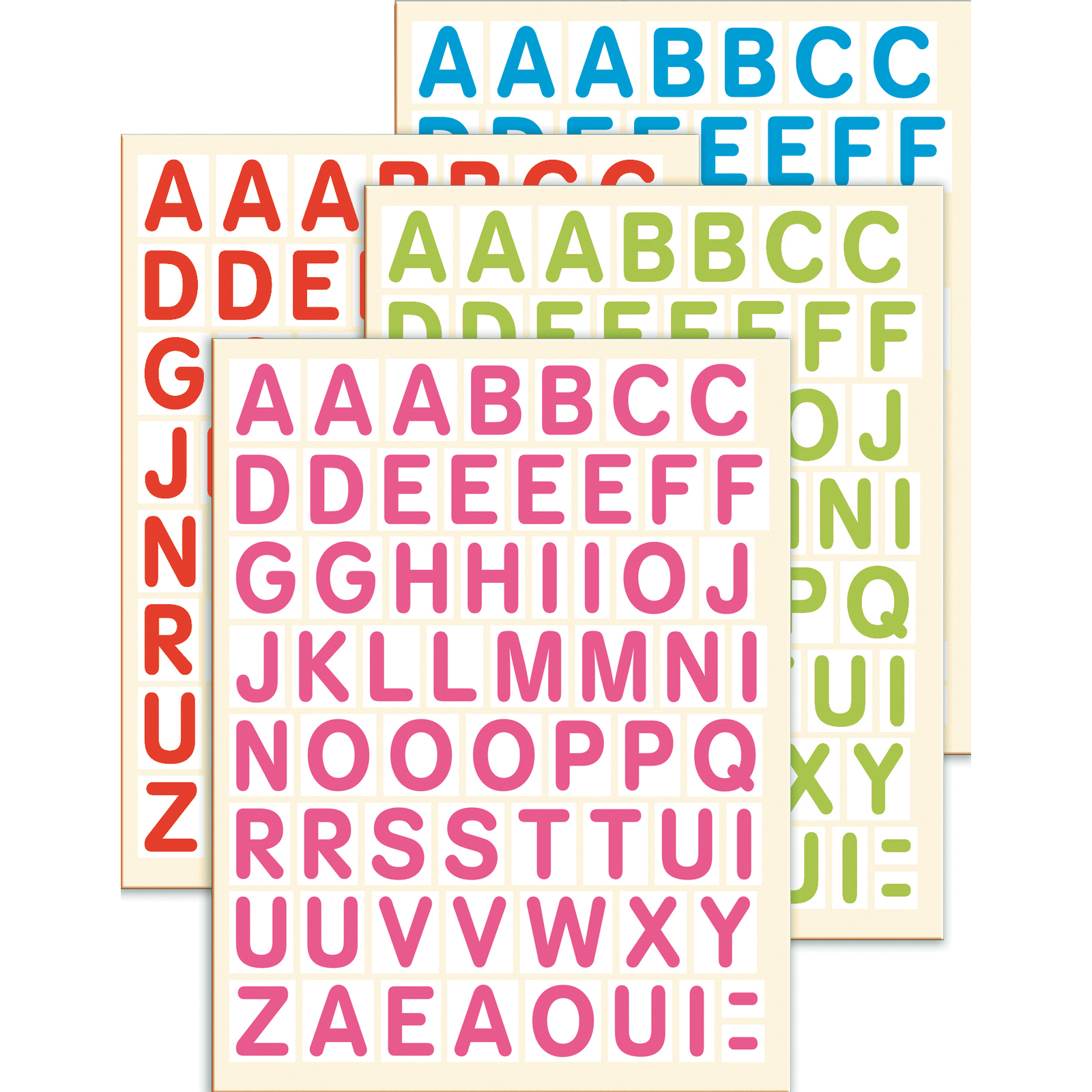 960 gommettes : 60 lettres par planche et 2 traits d'union.4 couleurs assorties. H lettre : 1,9 cm.