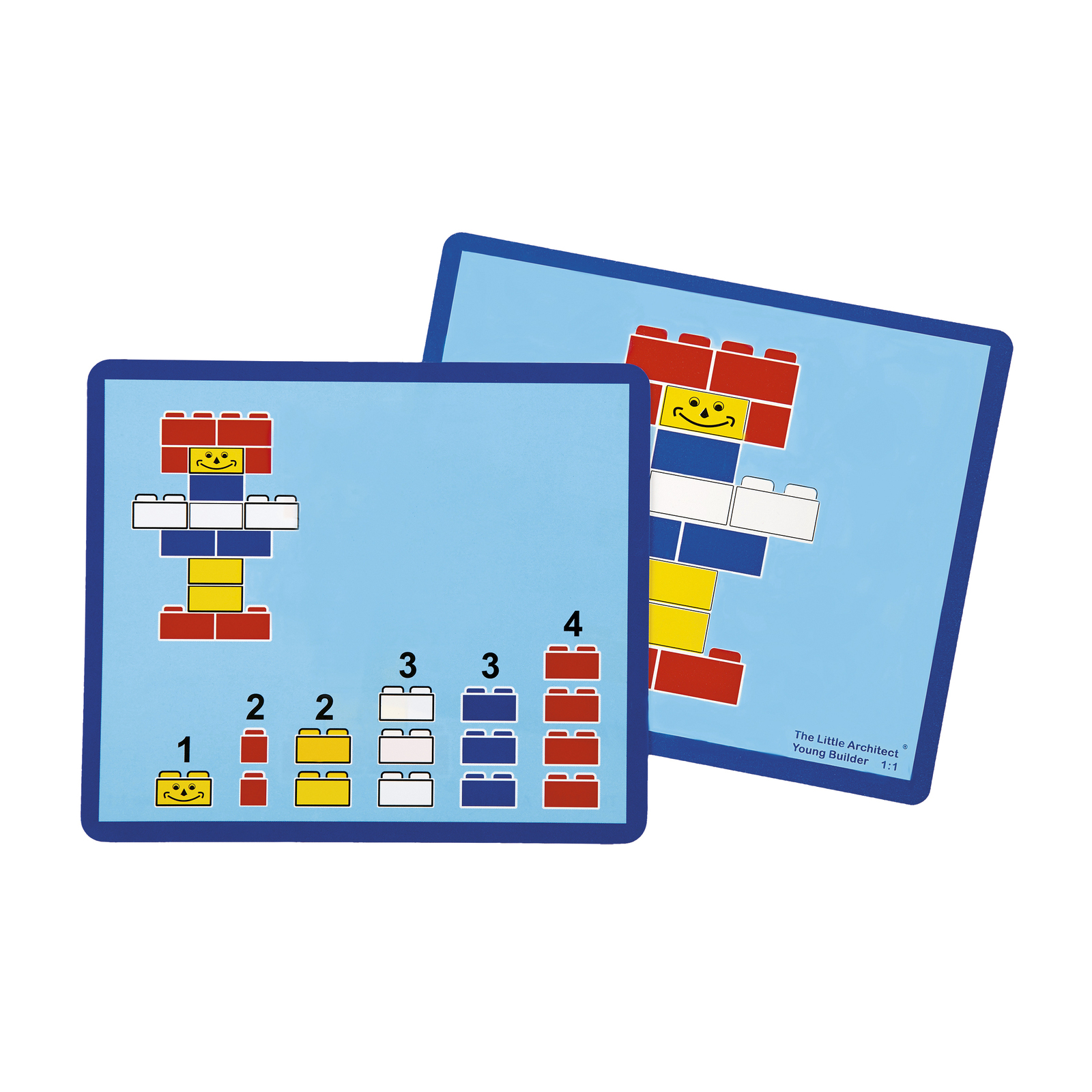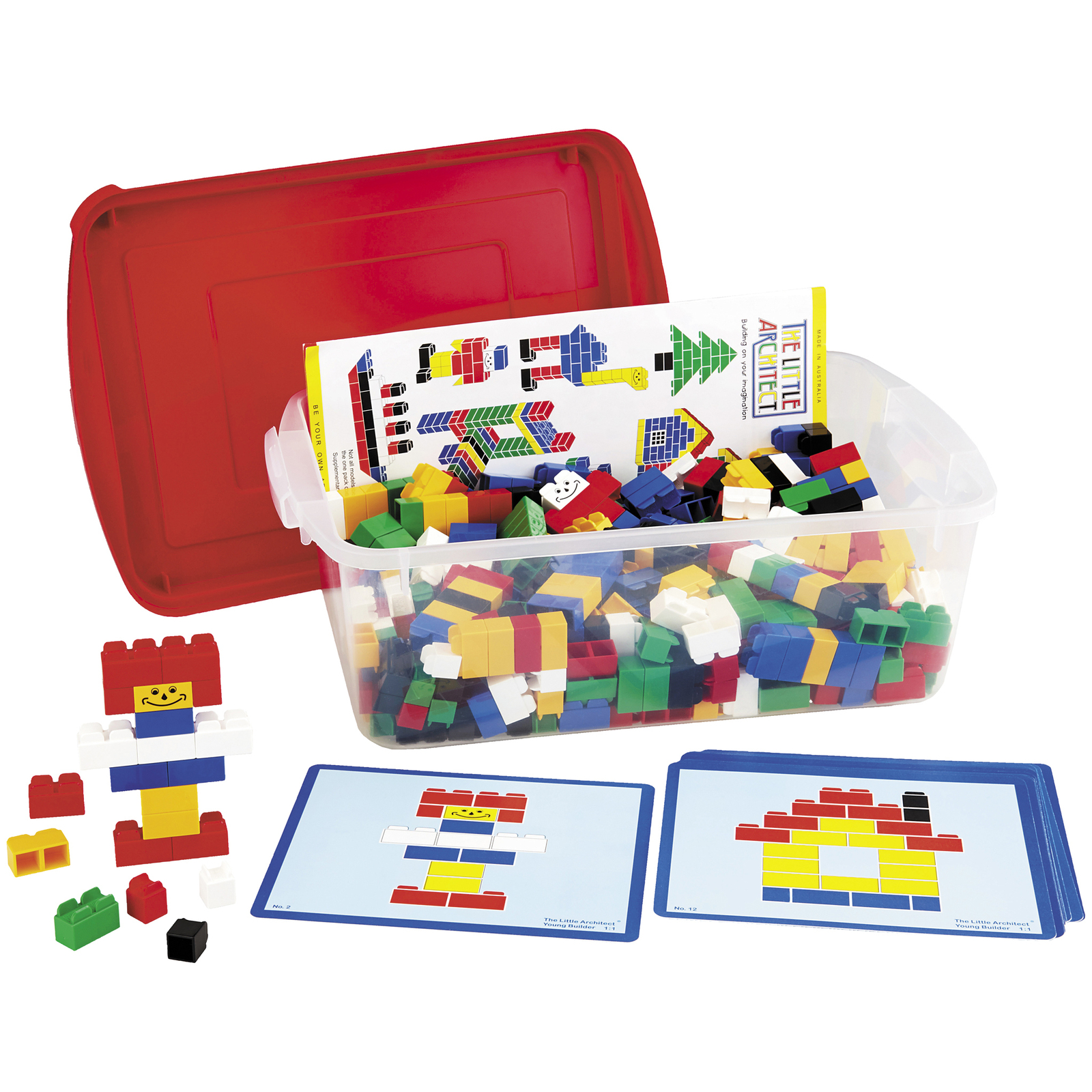 600 briques en plastique rigide (2 tailles, 2 formes et 6 couleurs) offrent aux enfants la possibilité de réaliser un grand nombre de constructions. Ils peuvent également se baser sur les fiches modèles.Les fiches modèles présentent au recto le modèle à construire et, au verso, les pièces à utiliser. Elles initient ainsi au dénombrement de 1 à 9 et à la lecture d'une consigne. Un poster propose 29 modèles supplémentaires.• L'ensemble comprend : 600 briques en plastique rigide, 12 fiches modèles plastifiées et 1 poster. • Livrées dans un bac plastique transparent. • L/l/H grande brique : 2,5 x 1,2 x 1,2 cm. • L/l fiche : 17 x 15 cm.