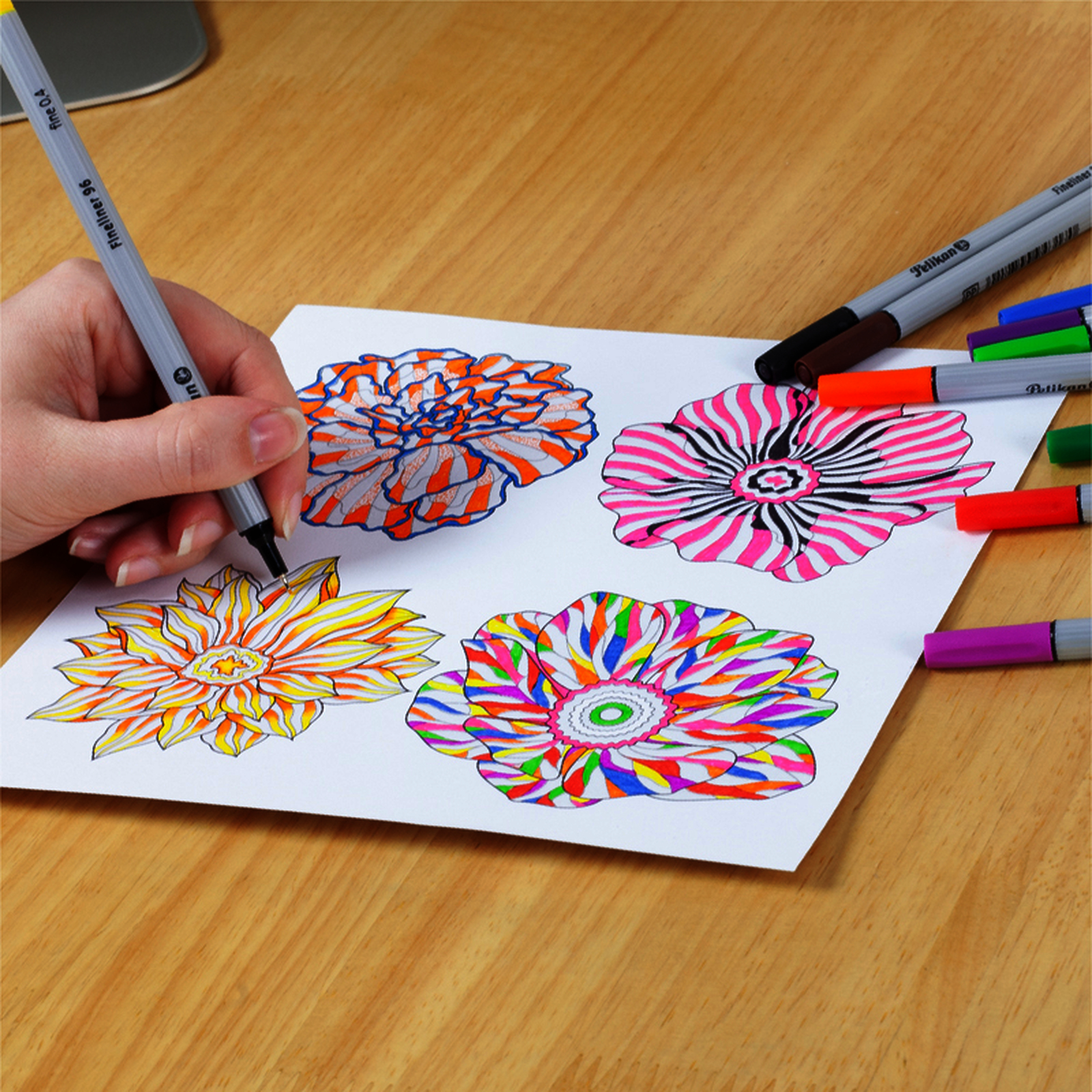 Stylo ? encre ? base d?eau, trait fin 0,4 mm pour trac?s pr?cis. Pointe m?tal durable, capuchon ventil?. Corps ergonomique ? rainures, id?al pour ?criture soign?e, r?gles et pochoirs en classe.