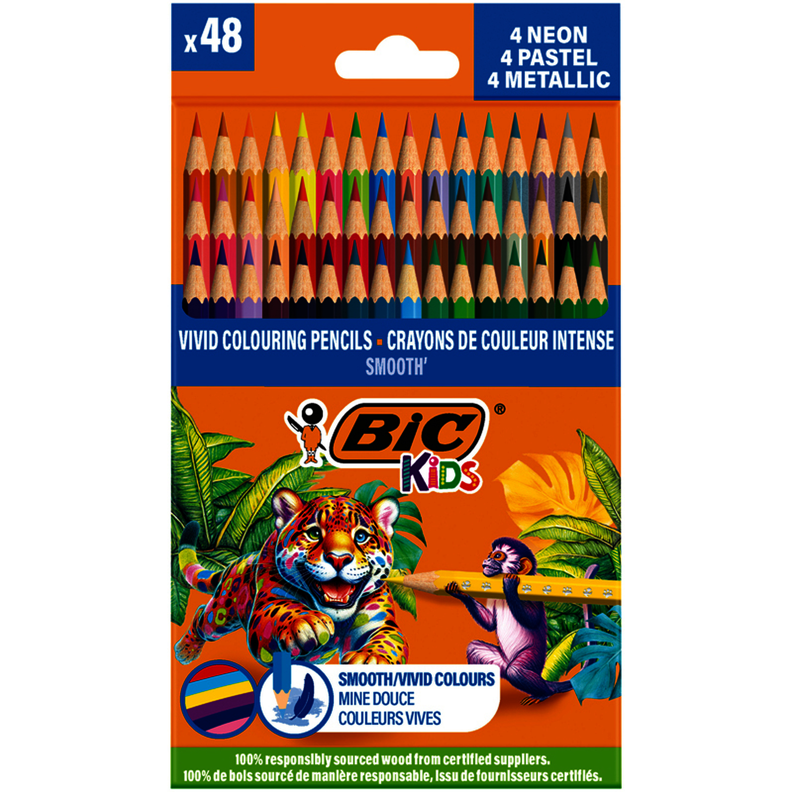 KIDS SMOOTH 48 CRAYONS COULEUR COLORIS CLASSIQUES, METAL, PASTEL ET NEONS ASSORTIS