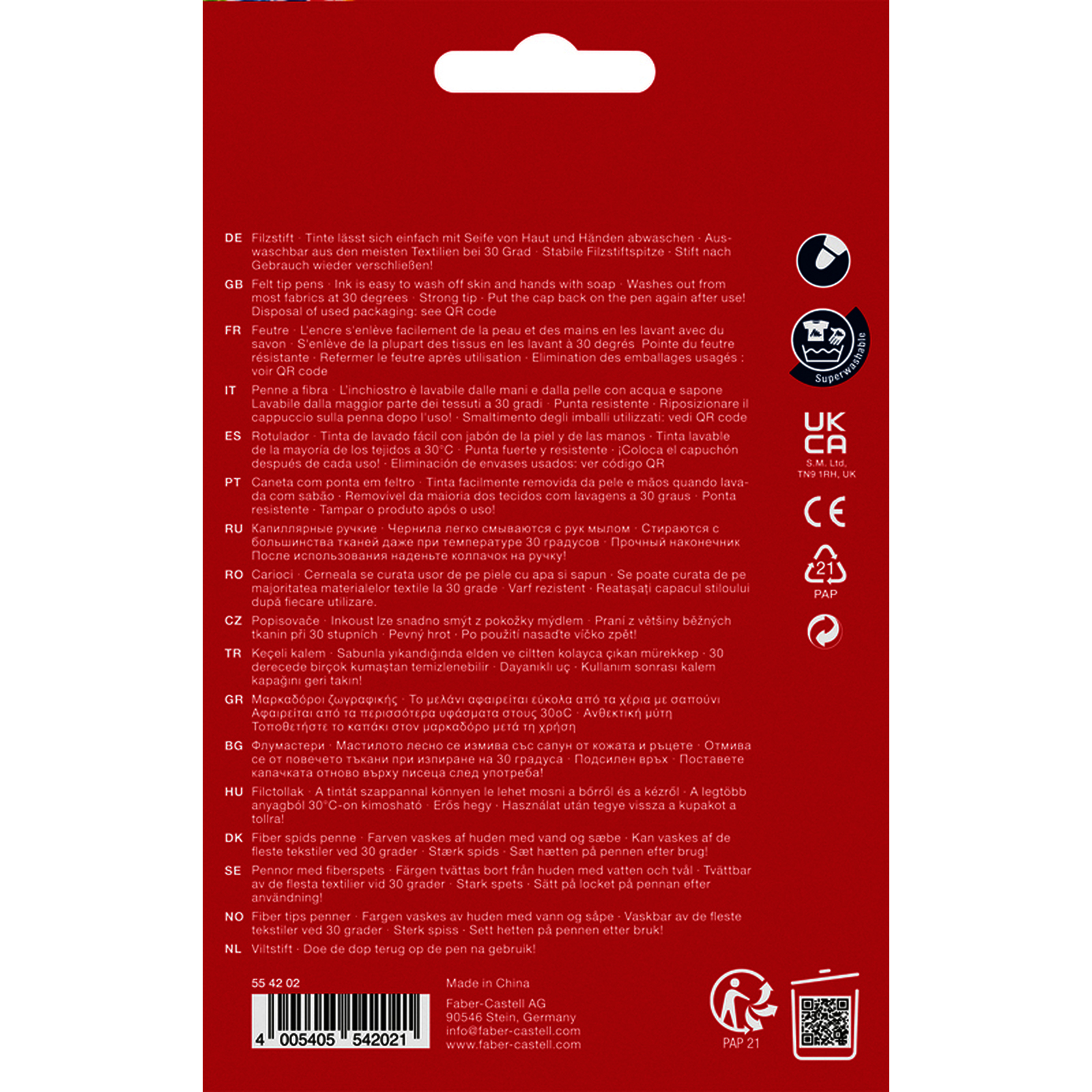 Feutres ? encre lavable, s?rs et adapt?s aux enfants. Leur trac? r?gulier de 3 mm favorise la pr?cision et la cr?ativit?, tandis que le capuchon ventil? garantit une utilisation s?curis?e en classe.