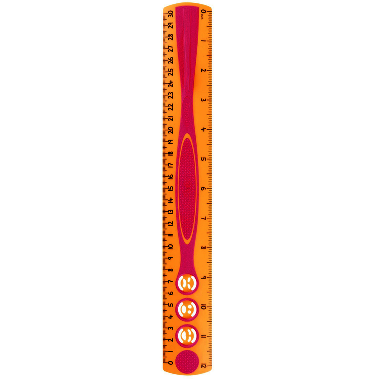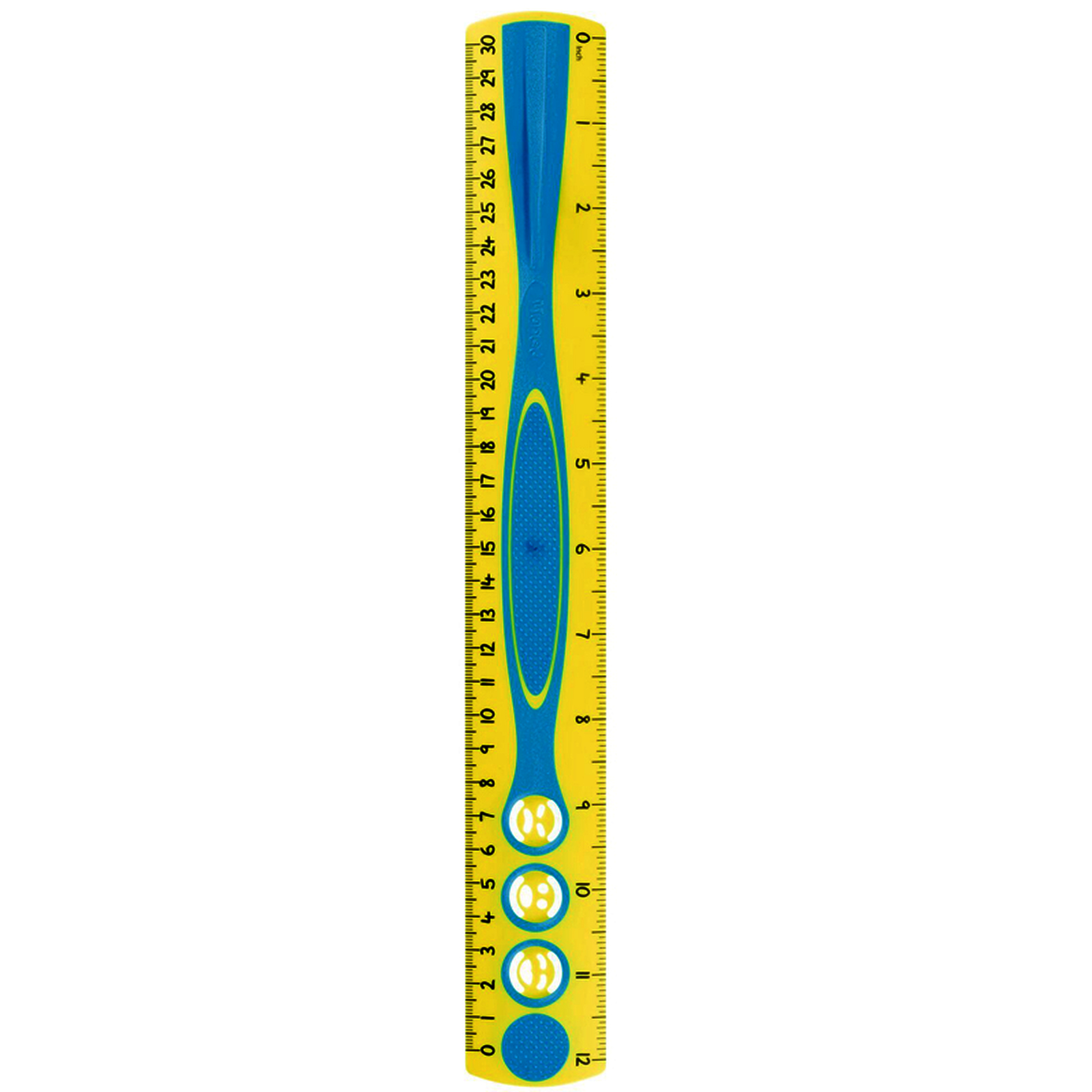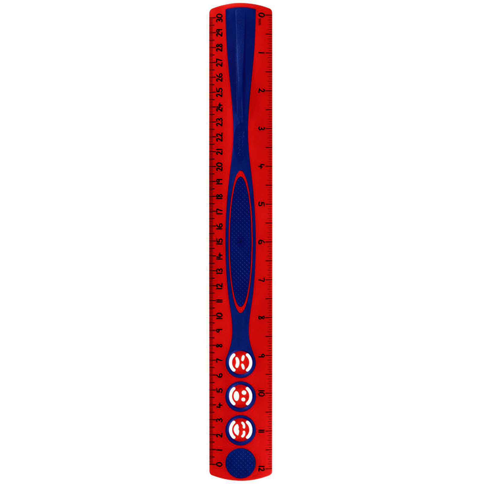 Une règle bien pensée avec une petite poignée de préhension sur un côté et des surfaces antiglisses à picots pour faciliter sa prise en main. Le triple décimètre