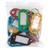 En plastique de couleur, bristol avec rhodoïd transparent. Attache métallique en anneau. Dimensions (sans attache) : 51 x 21 mm.Couleurs assorties - Le sachet de 20