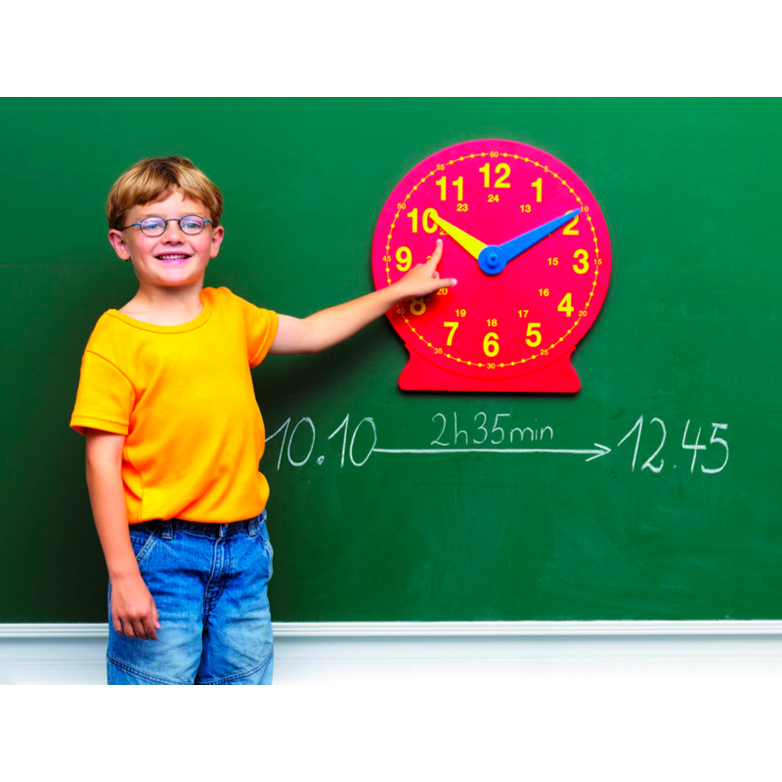 Idéale pour toutes les démonstrations en classe. Les aiguilles sont synchronisées. Peut se suspendre sur toutes les surfaces magnétiques grâce à ces 4 aimants.Dim. (Ø) : 41 cm - L'unité