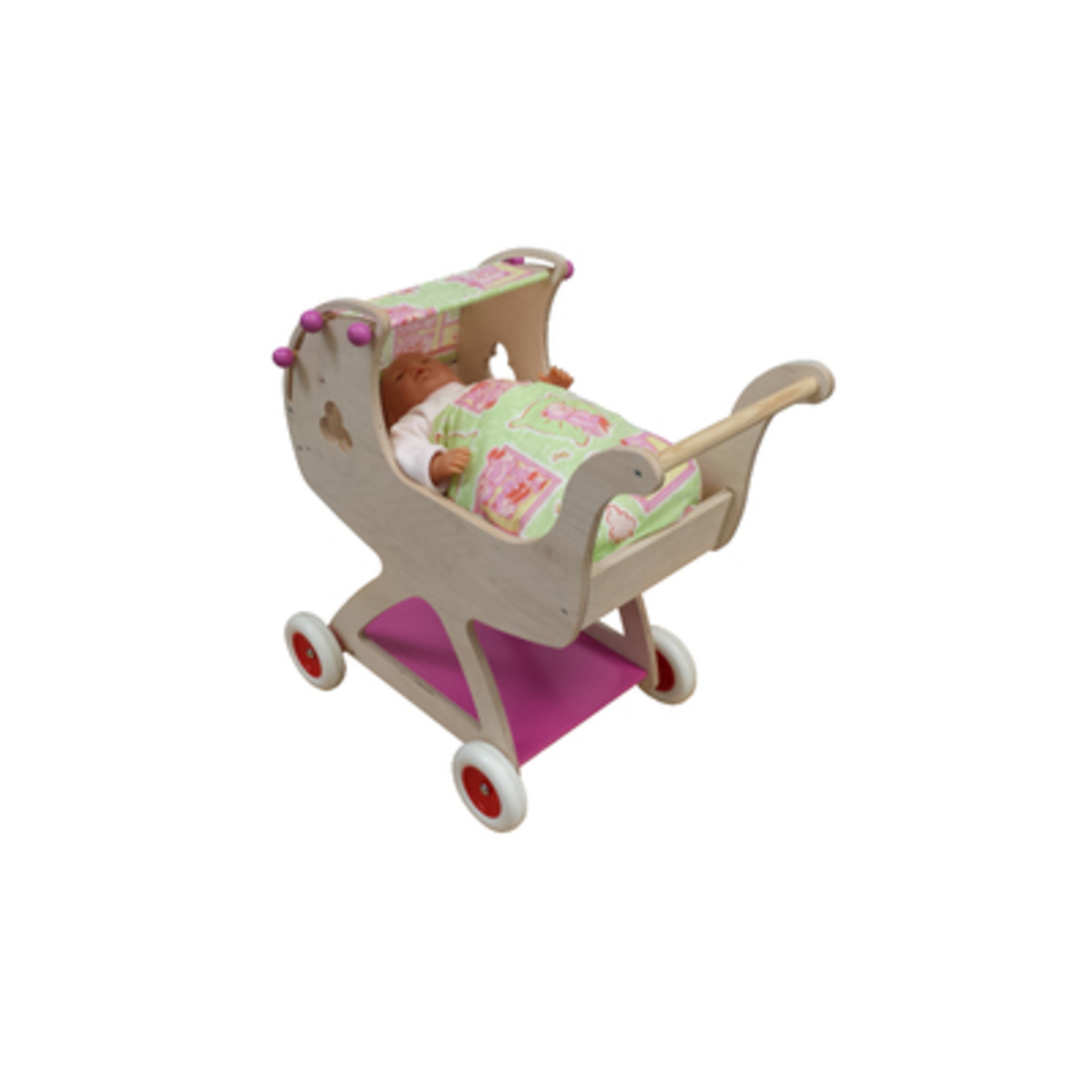 Formes arrondies et capote amovible. Livré avec une couette.Dim. (L x l x H) : 63 x 35 x 60 cm