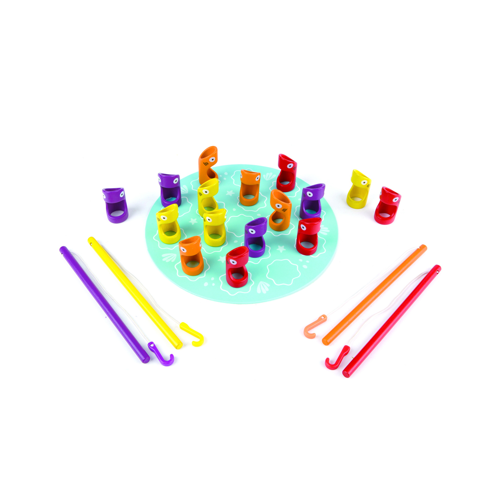 But du jeu : plus di?cile a jouer que les jeux de p?ches magn?tiques, ici il faudra r?ussir a mettre l?hame?on dans la gueule du requin que l?on veut p?cher. Int?r?t p?dagogique : adresse. De 1 ? 4 joueurs. Contenu : 16 requins, 4 cannes ? p?che et 1 support