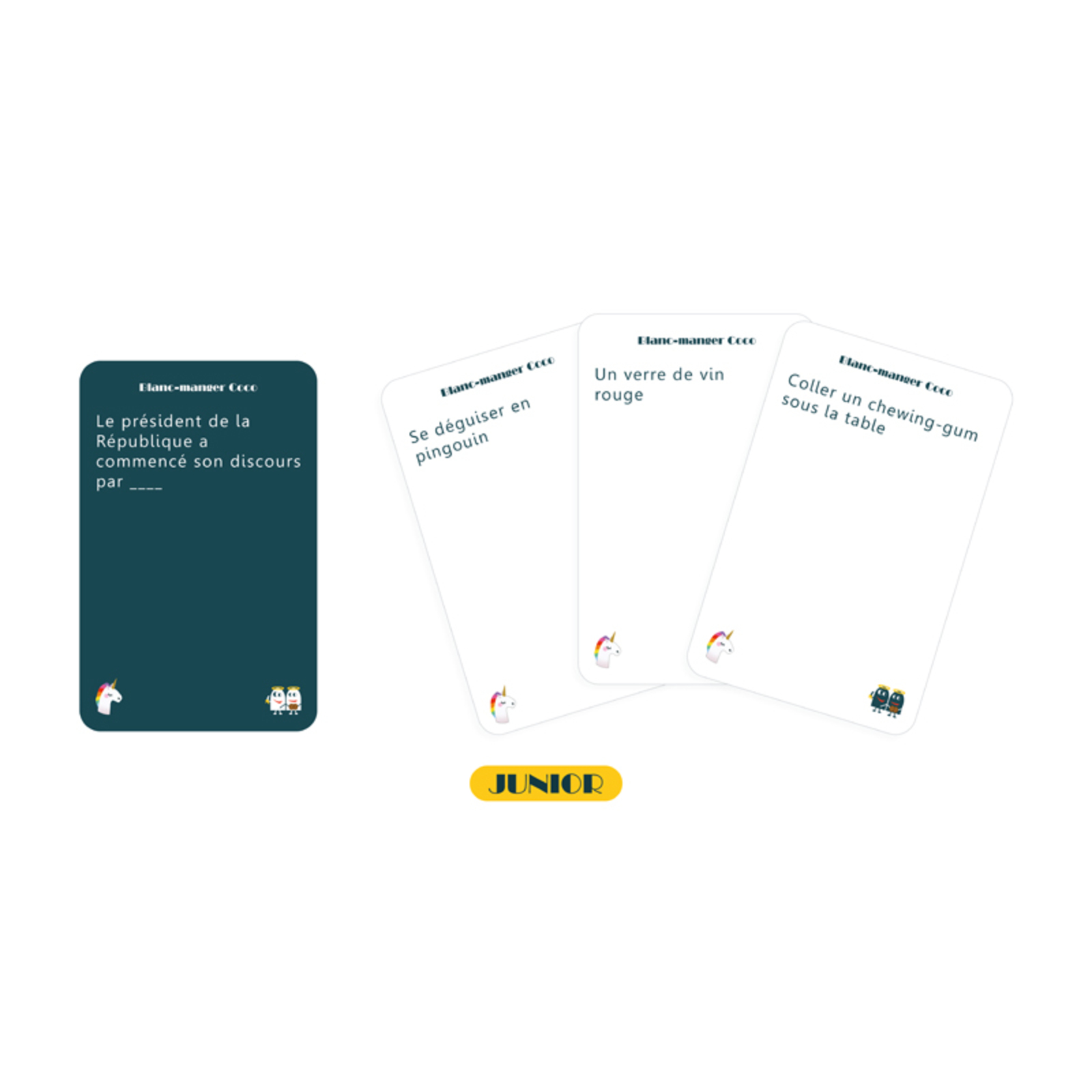 But du jeu : faire rire les autres joueurs avec des combinaisons de phrases à trous et de mots. 100% adapté aux enfants.Contenu : 400 cartes blanches, 100 cartes bleues et 1 règle du jeu3 à 6 joueurs - Durée : 15 min