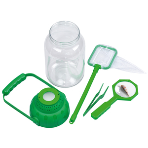 Contenu : 1 bocal à insectes avec loupe, 1 filet avec poignée en 2 parties, 1 loupe, 1 pince à épiler et un manuel d’instructions