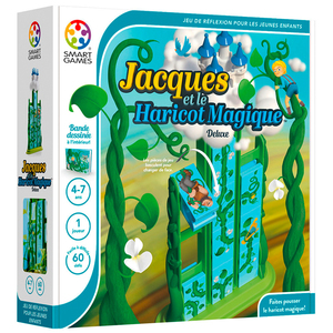 But du jeu : aidez Jacques à grimper le long du haricot magique pour atteindre le château du géant dans les nuages. Il vous faudra placer les pièces de jeu dans le bon ordre et du bon côté en les faisant basculer de haut en bas par un effet mécanique...magique!Contenu : 1 structure de jeu sur un socle, 10 tuiles réversibles, un nuage et un château pour mettre au sommet, 1 livret avec 60 défis et 6 niveaux de difficulté, 1 livre avec le conte en bande dessinée sans texte et à la règle1 joueur