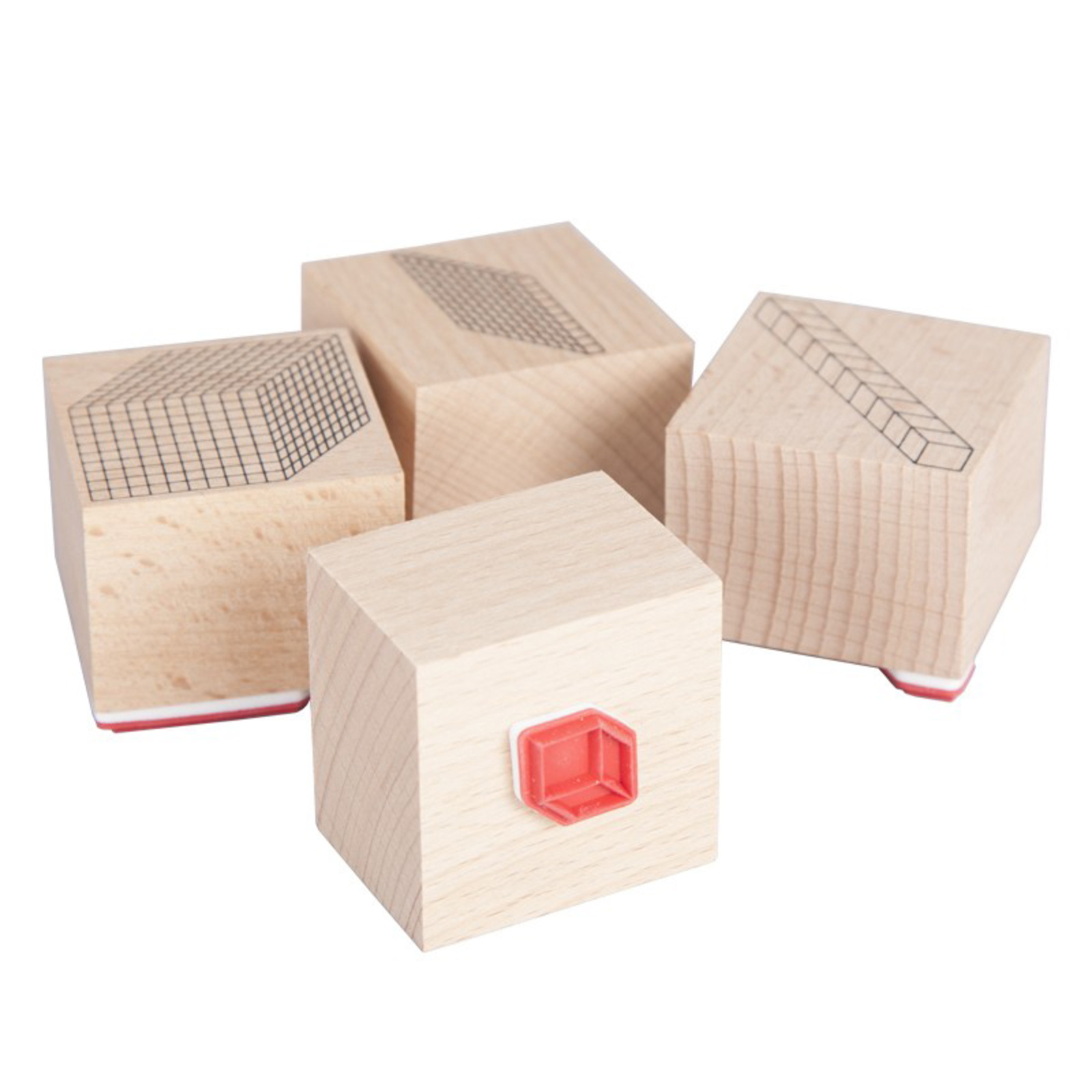 Tampons de décomposition numérique en base 10 pour représenter des quantités. Convient pour tout type d’encre.Contenu : 4 tampons bois représentant l'unité, les dizaines, les centaines et les milliers