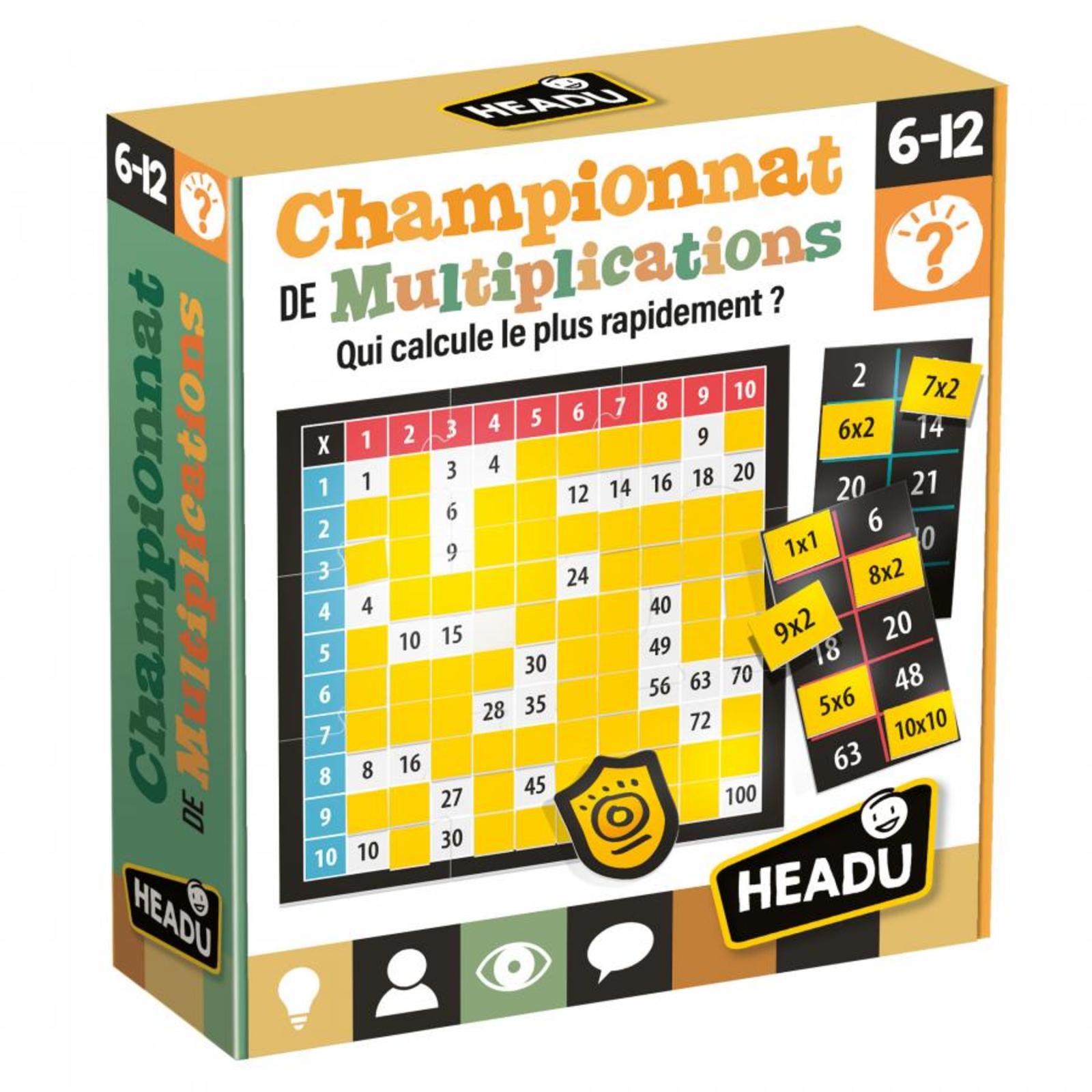 Pêche une carte, lis la multiplication et trouve le résultat correspondant sur le tableau. Mais attention, tu devras parfois être plus rapide que ton adversaire ! Un super championnat de tables de multiplications pour s’entraîner à calculer et découvrir la table de Pythagore ! Contenu : 10 cartons loto, 100 cartes des multiplications, 100 cache-numéros jaunes, 1 grande table de Pythagore, 1 plateau des multiplications et 10 jetons-correction