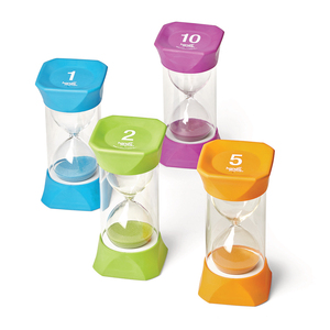 Les minuteurs surdimensionnés sont parfaits pour une utilisation partout où les enfants ont besoin d'aide à gérer le temps. Le sable coloré est coordonné avec chaque minuterie en plastique.Dim. (H) : 33 cm - Le lot de 4 sabliers (1 min, 2 min, 5 min et 10 min)