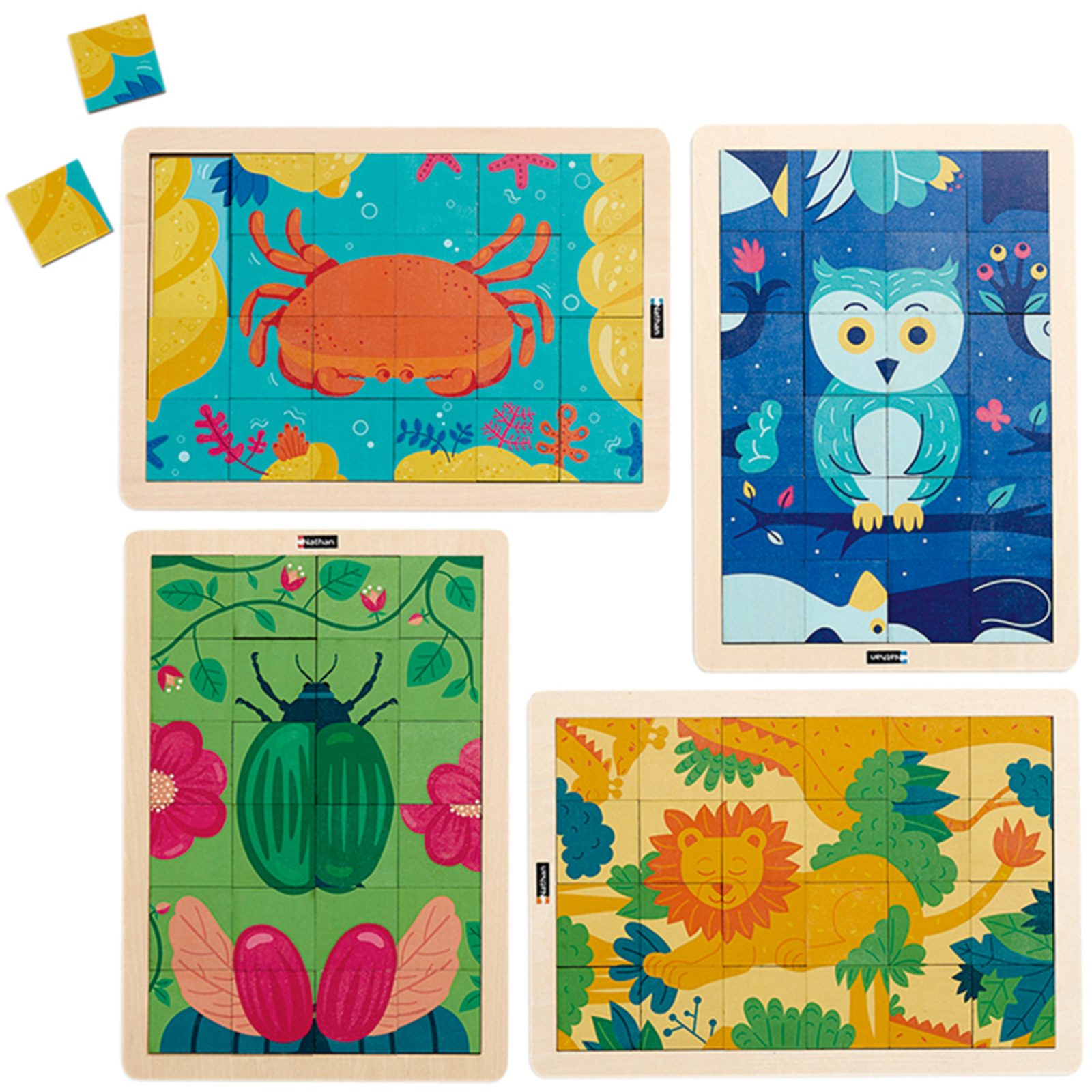 Un concept inédit pour cette collection de puzzles : 1 puzzle magique offre 2 réalisations possibles avec les mêmes pièces !Le lot de 4 puzzles de 24 pièces : le hibou et le manchot, les girafes et le lion, le crabe et le coquillage, le scarabée et le doryphore