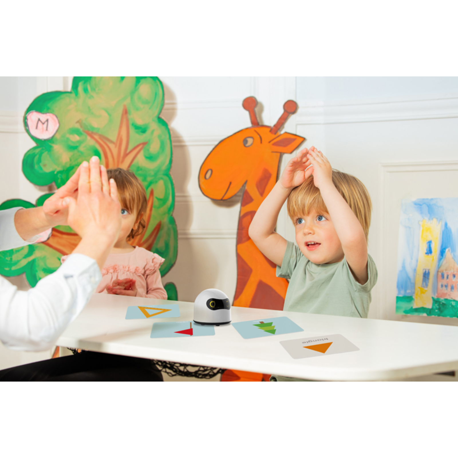 Le robot ACHOKA est un robot d’apprentissage simple d’utilisation et le plus ludique du marché des supports digitaux. Il parle 4 langues, raconte une histoire, joue de la musique, se déplace sur un plateau de jeux, suit les instructions et est un support autocorrectif pour les enfants. Les intérêts pédagogiques sont les suivants : - développer le langage, le vocabulaire, la prononciation et la construction du récit. – s’exercer à la concentration, à l’écoute et à la mémorisation. - Développer la mémoire visuelle et auditive. - associer son/lettre/mot/objet/animal/un nombre. - S’exercer au tri. - développer la notion d’espace/temps. - développer un esprit de logique en 2D. On retrouvera des degrés de difficultés au sein d’un même jeu, ce qui permettra une progression positive chez l’enfant. Une notice de jeux accompagne chaque support de cartes ou de plateau.À utiliser avec l'Interactive Bot