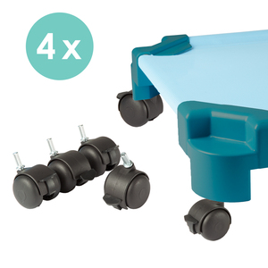 Roues noires avec frein parfaitement adaptables à la couchette Évolution.
