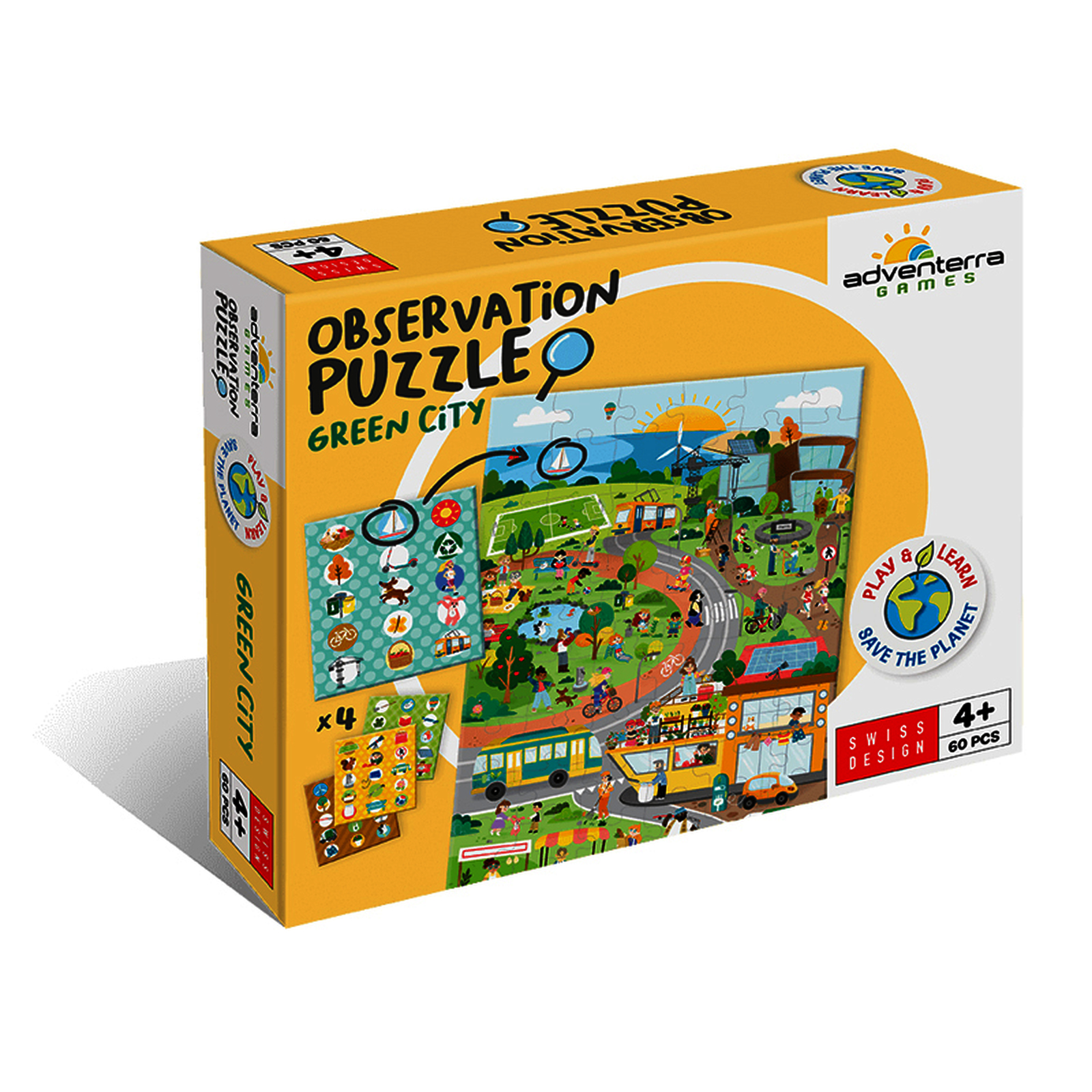 Assemble le puzzle et explore une ville ?cologique tout en rep?rant objets et gestes durables ? l?aide de fiches illustr?es. Un grand poster guide l?observation.