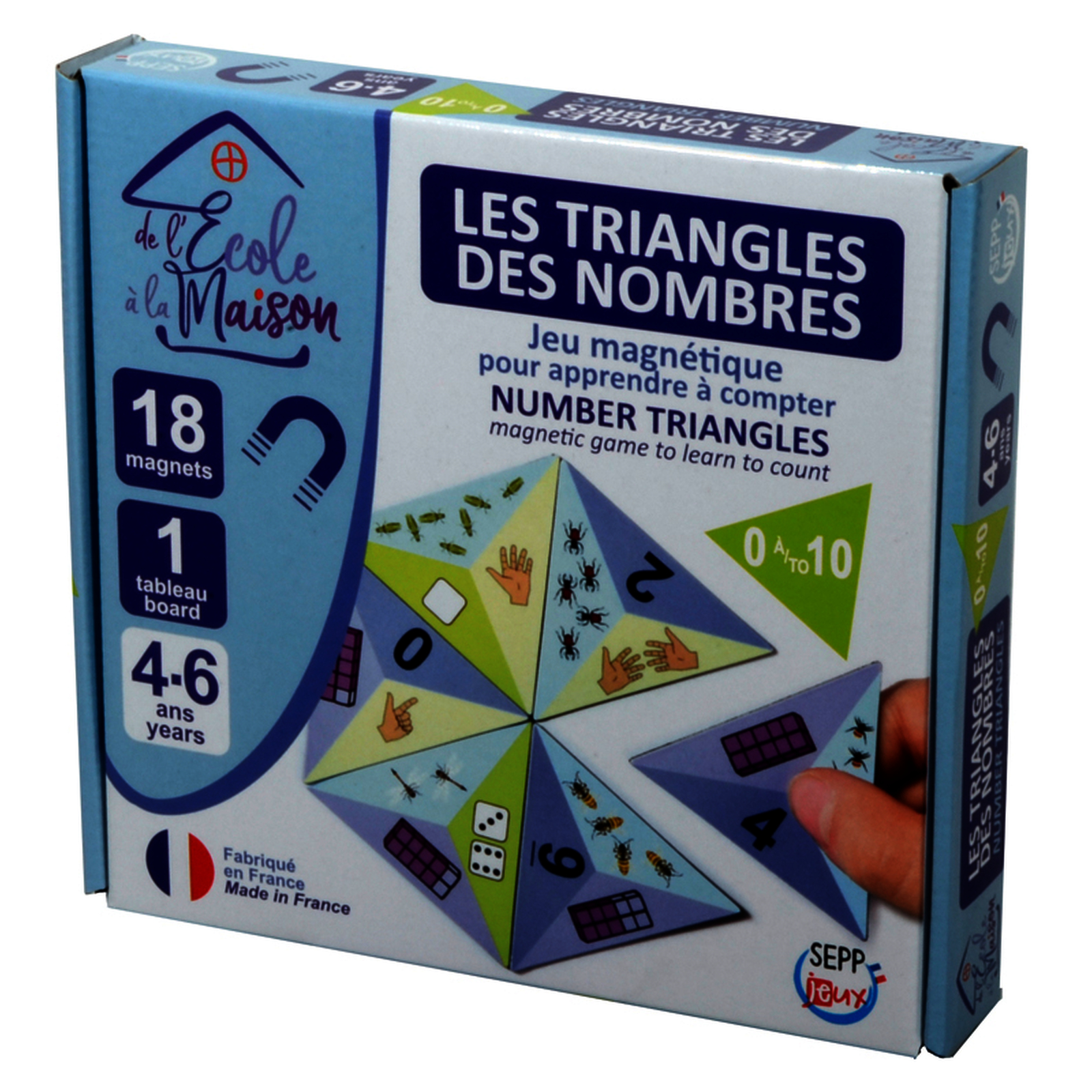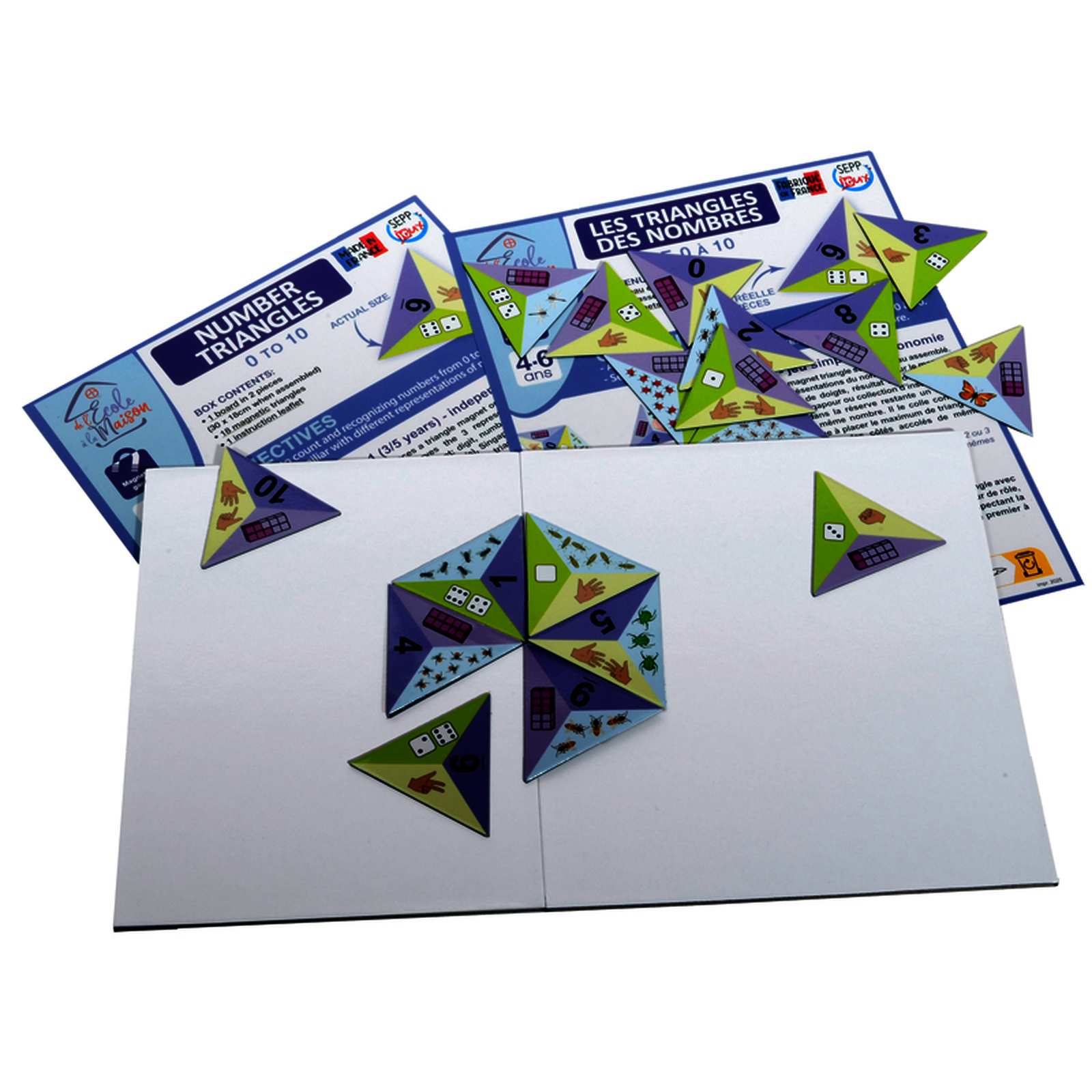 Associer les nombres de 0 ? 10 en pla?ant les triangles aimant?s c?te ? c?te. Un jeu de rep?rage visuel et de reconnaissance des nombres tout en manipulant.