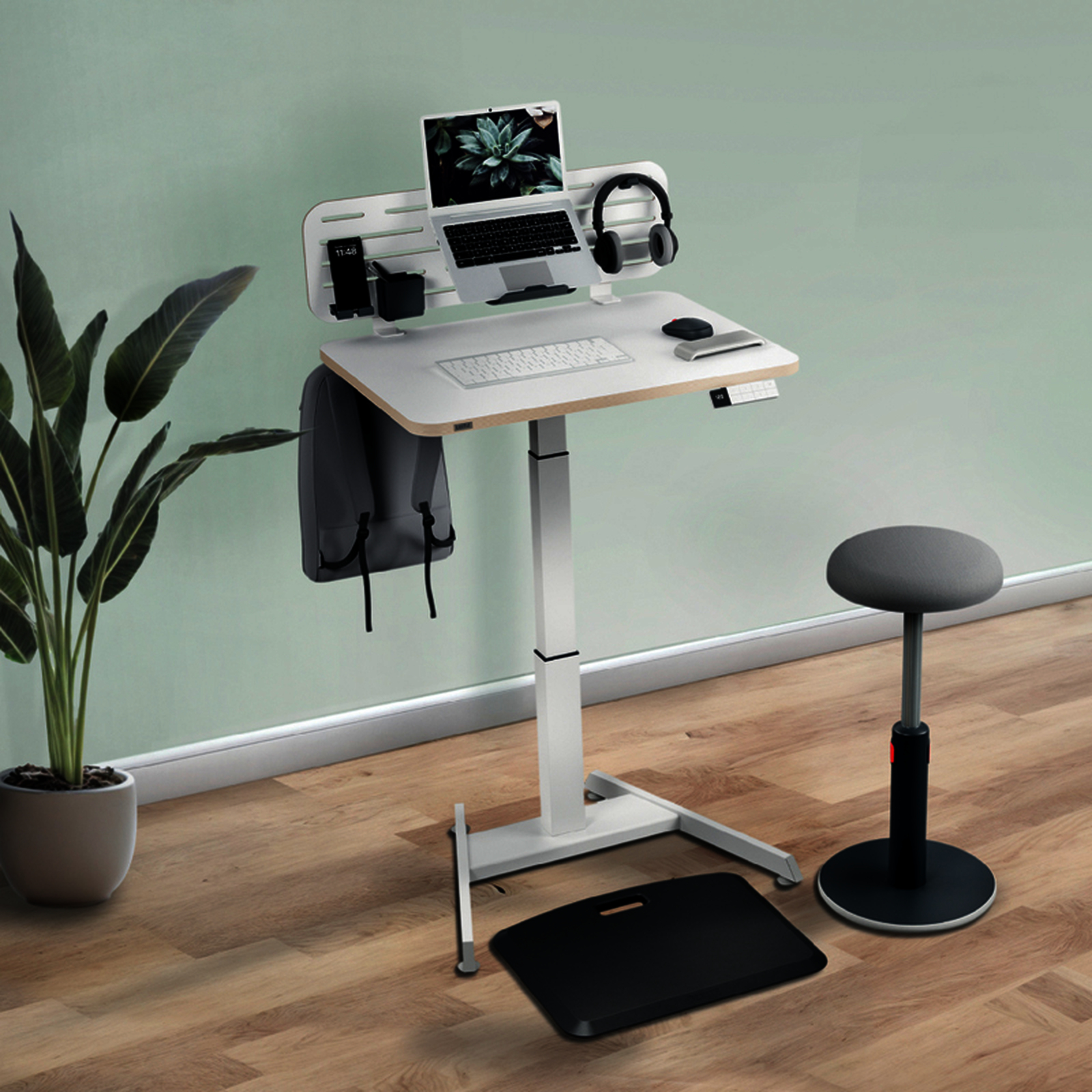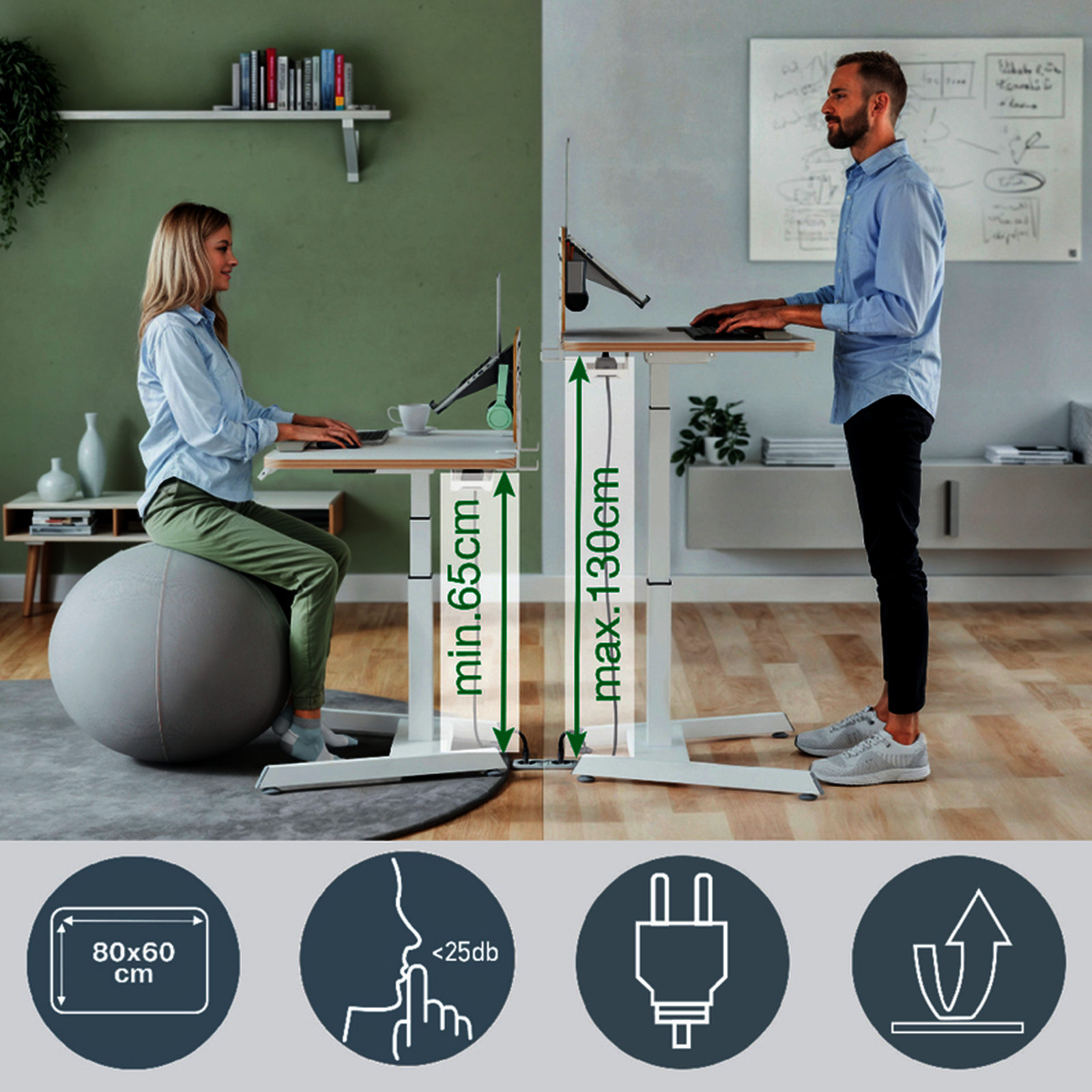 Bureau assis-debout compact 80x60 cm, r?glage ?lectrique, m?moire et rappel de position. Favorise mouvement, confort et productivit?. Design minimaliste, id?al pour espaces de travail flexibles.