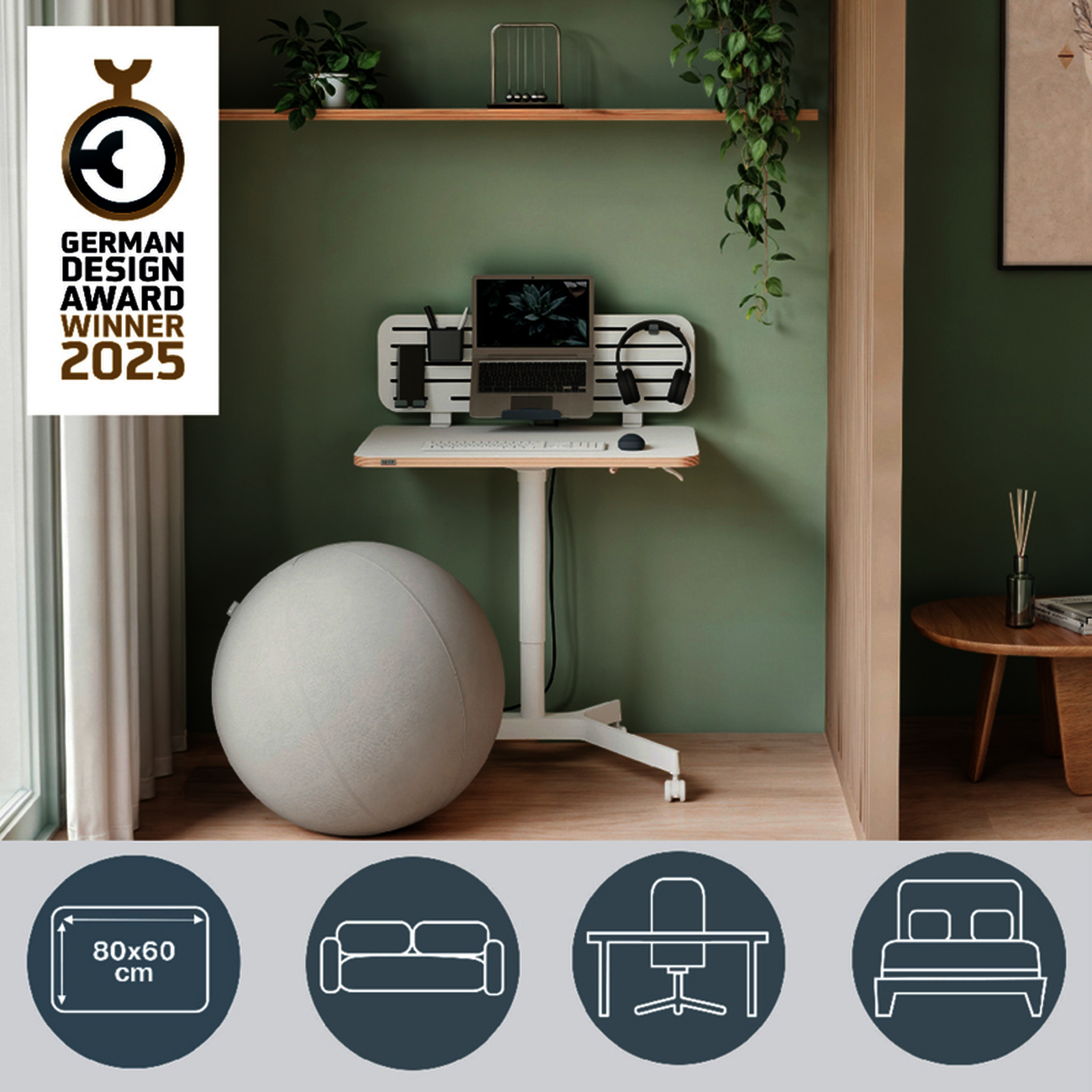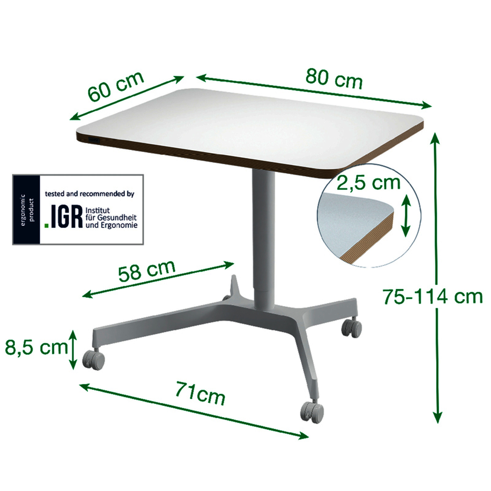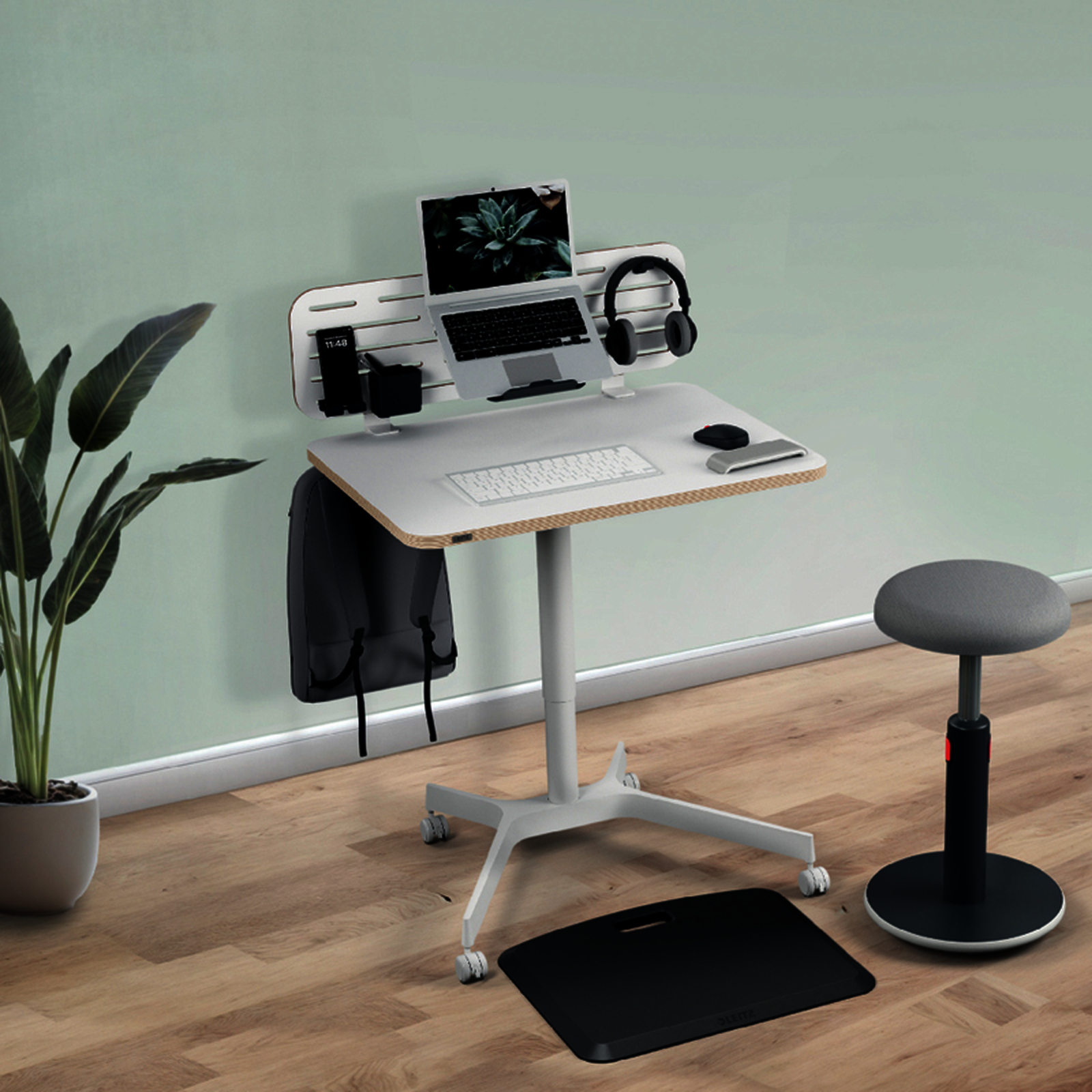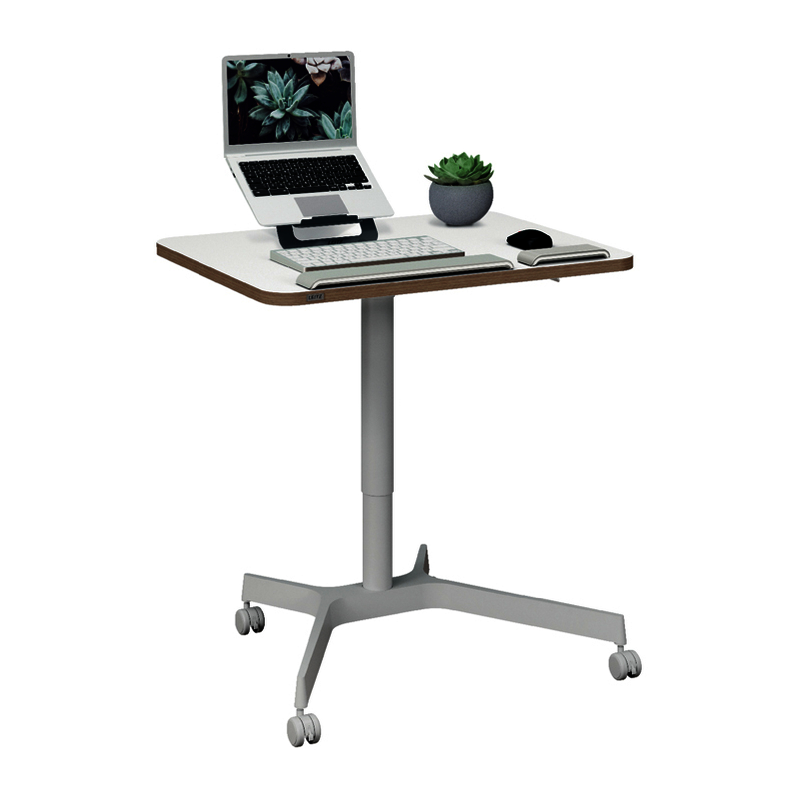 Bureau assis-debout mobile et compact 80x60?cm avec r?glage pneumatique et roues verrouillables. Favorise mouvement, confort et posture ergonomique. Id?al pour les espaces de travail flexibles.