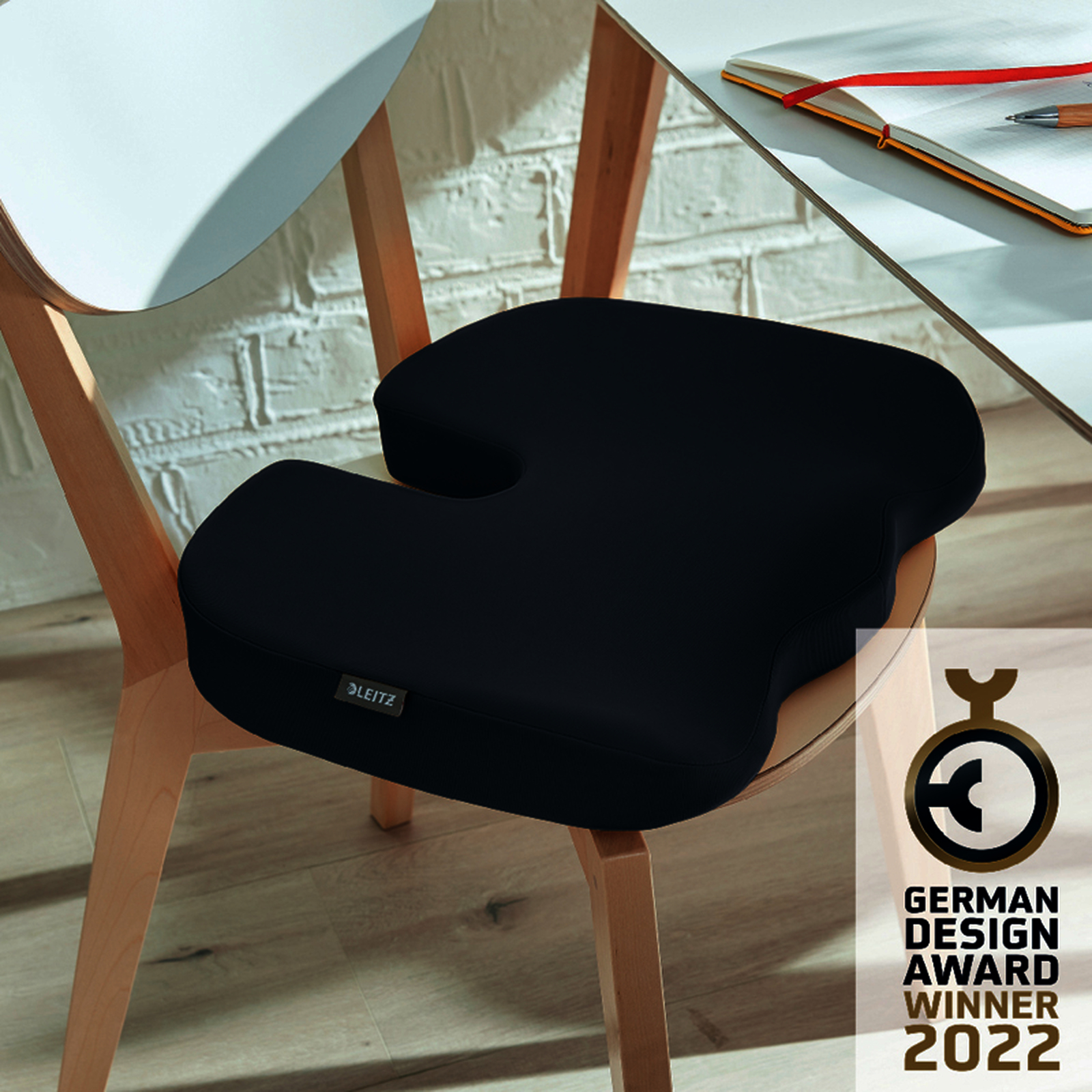 Coussin de si?ge Leitz Ergo Cosy pour posture saine et confort durable. R?duit fatigue, raideur et pression vert?brale. Utilisable partout. Design minimaliste ?l?gant.