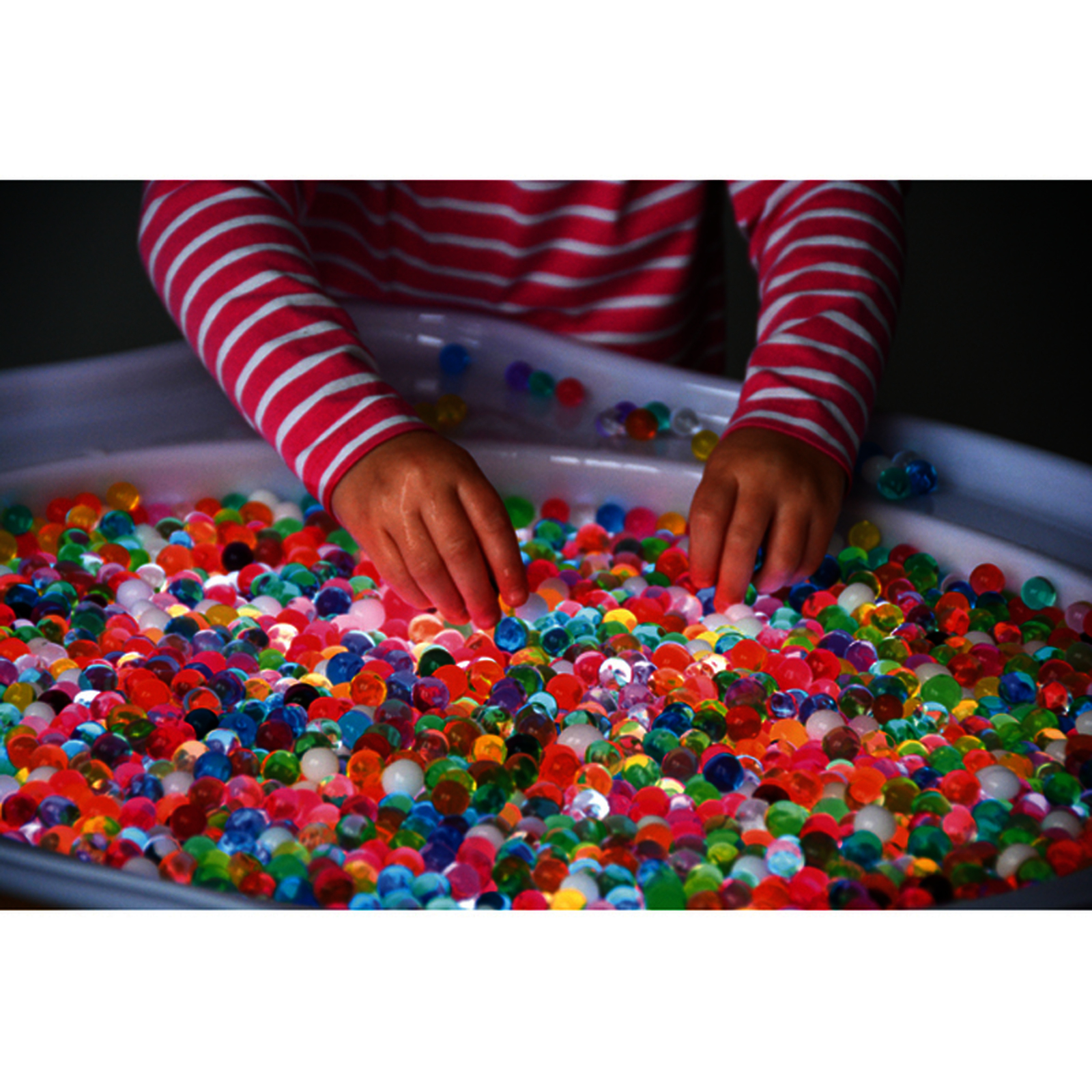 Perles sensorielles absorbantes pour activit?s tactiles et exploratoires. Id?ales pour manipulations avec tables lumineuses. R?utilisables apr?s s?chage. Format s?r pour ateliers sensoriels et d?coratifs en maternelle et primaire.