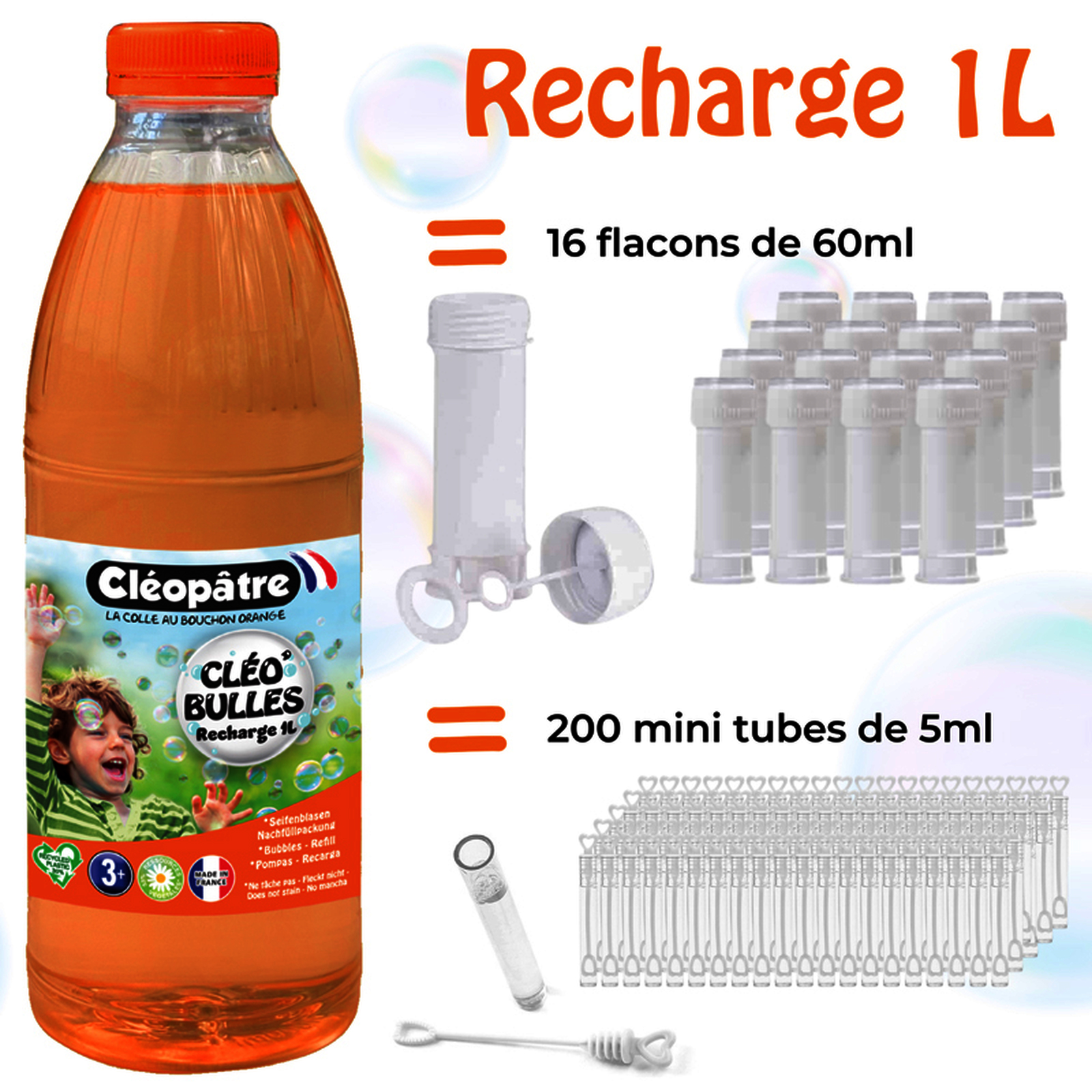 FLACON RECHARGE 1 LITRE BULLES ORANGE