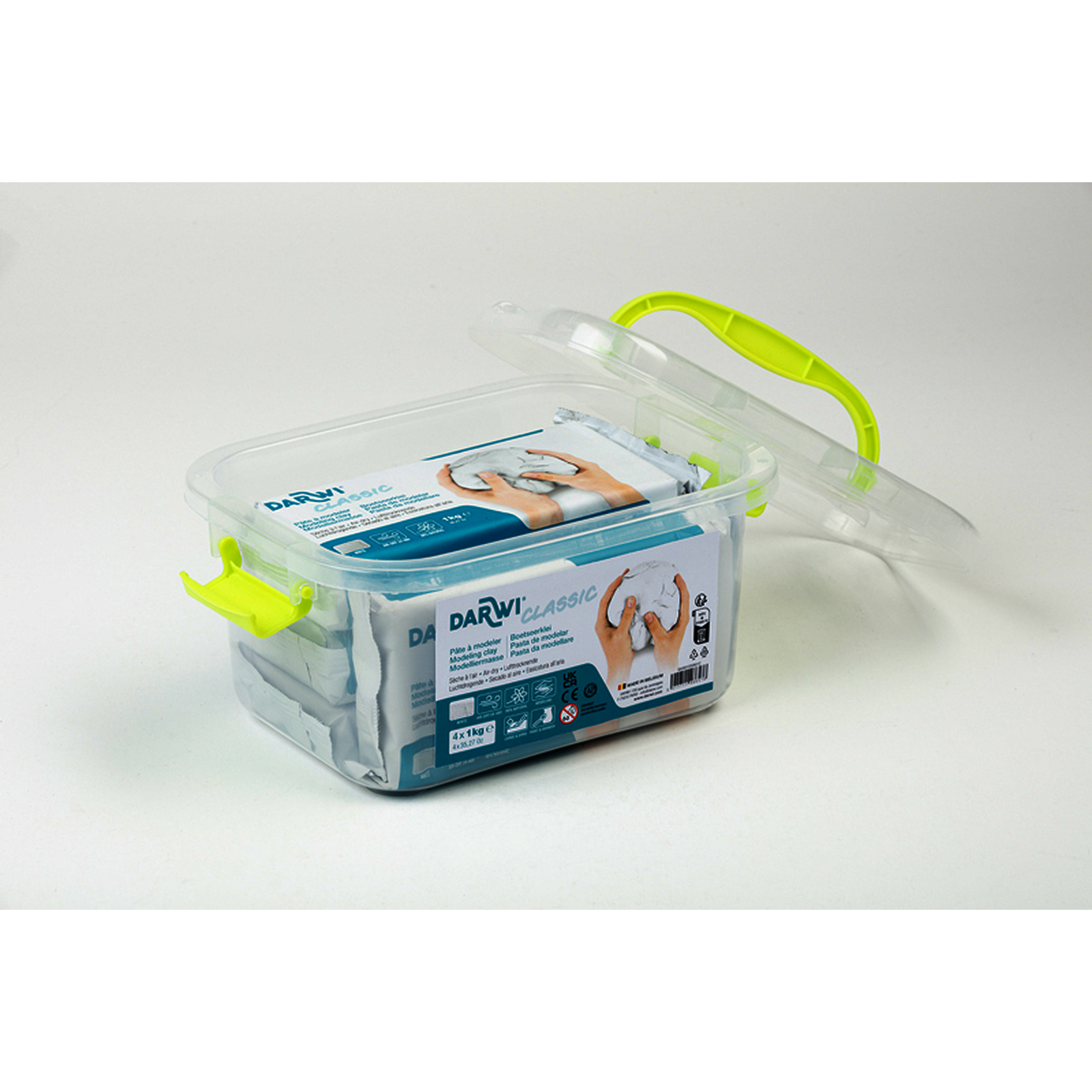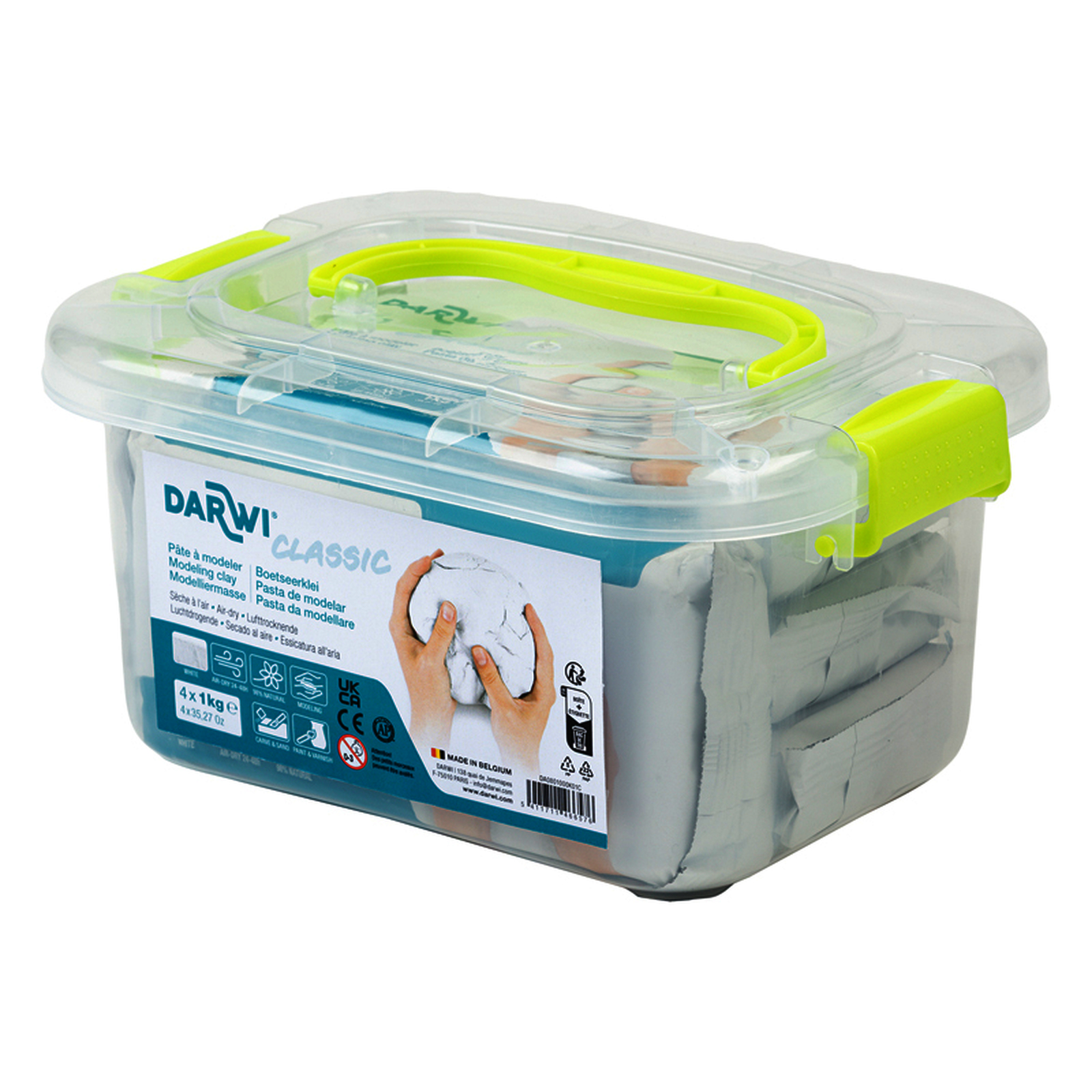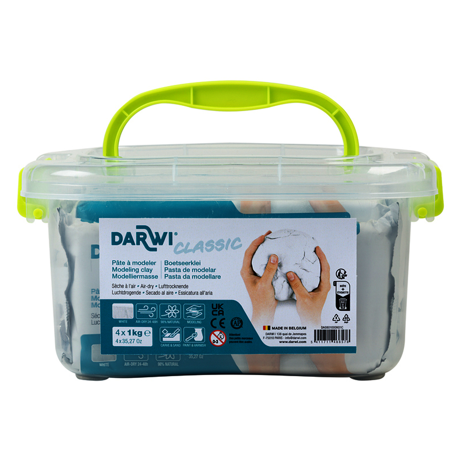 La p?te autodurcissante Darwi, r?put?e pour la finesse de son grain, est utilis?e pour tous travaux de modelage ou de sculpture. Sans odeur et ne colle pas aux mains, ce qui permet un travail agr?able. La p?te est souple et semi-?lastique. Elle ne se r?tracte pas en s?chant et est totalement opaque. La Darwi Classic est blanche et mi-dure apr?s s?chage. Elle peut ?tre teint?e avec des peintures.