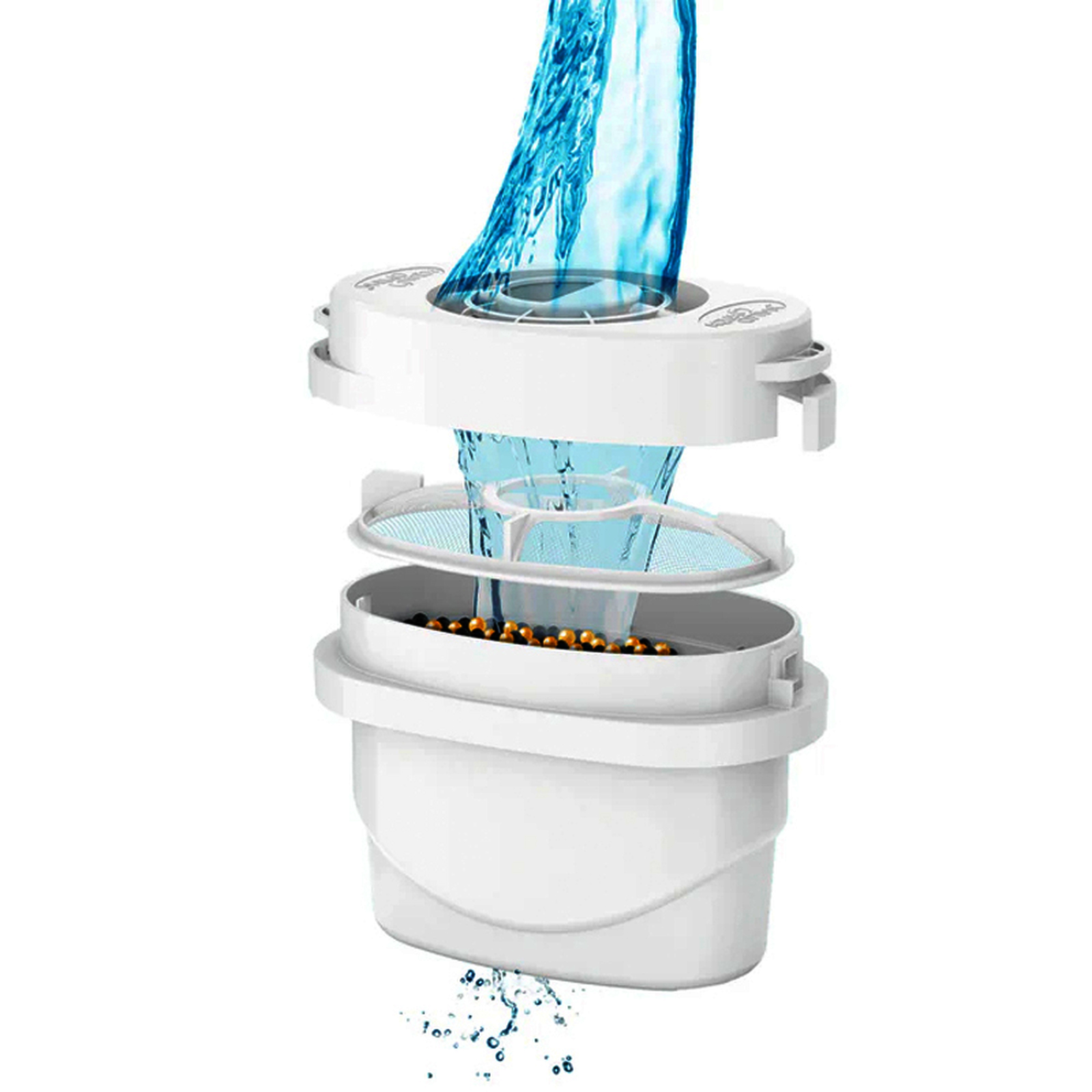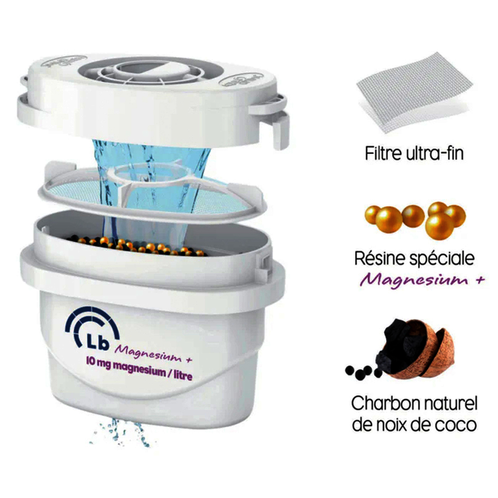 Carafe filtrante. Couvercle ouverture facile. Cache-bec intégré. Poignée confort, cartouche à fixation baïonnette. Filtration rapide. Rappel de changement de filtre par application LB smart change. Capacité totale : 2,5 L. Capacité filtrée : 1,2 L.